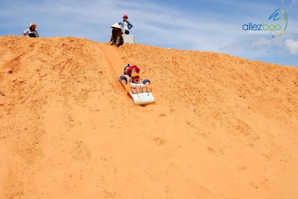 The Pink Sand Dunes, located 30km from Phan Thiết city center, are a must-visit for their unique pinkish hue and Instagram-worthy backdrop. Sand sledding here is a fun, thrilling activity, perfect for all ages. Rent a sled for about 50,000 VND per hour and slide down the smooth slopes, feeling the rush of wind against your face.