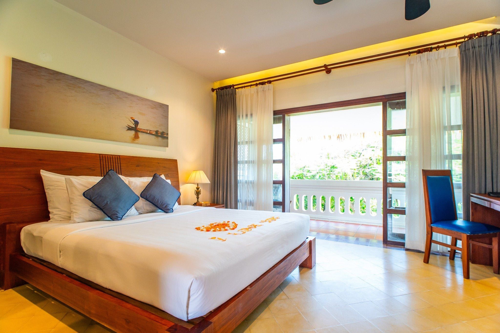 Premier Deluxe Room là điểm dừng chân lý tưởng để thư giãn và tận hưởng những khoảnh khắc sang trọng, có sẵn giường đôi hoặc 2 giường đơn với ban công hướng ra vườn.