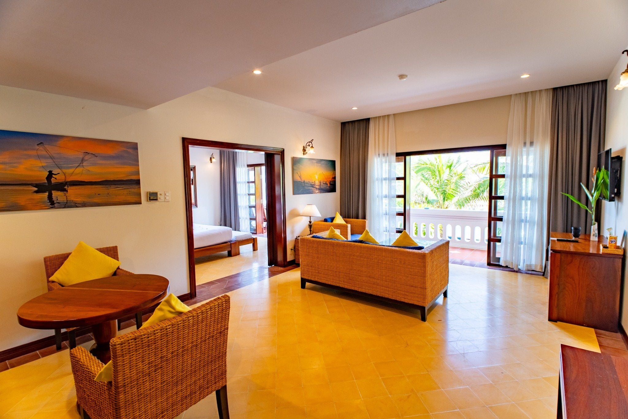 Bạn sẽ bị mê hoặc bởi tầm nhìn bao la ra biển xanh ngát, tạo nên không gian lý tưởng để thư giãn và tận hưởng những khoảnh khắc bên bờ biển, có sẵn 1 giường đôi cỡ lớn